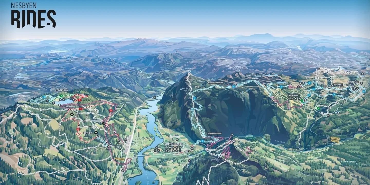 Nesbyen er omgitt av fjell på flere kanter, med Nesfjellet og Mykingområdet som de mest kjente. De store og flotte fjellområdene byr milevis med turstier og skiløyper i alle himmelretninger. Her kan du begi deg ut på turer i lunt skogsterreng, eller en topptur til kjente utsiktspunkt på snaufjellet. I høysesong venter mer enn 450 km preparerte skiløyper på deg.